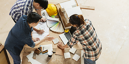 床仕上げ工事は建築物において、素材が異なる床材を使用して床面を仕上げていく工事です。フローリングやクッションフロア、カーペットなどを床材を床にはめ込んでいきます。